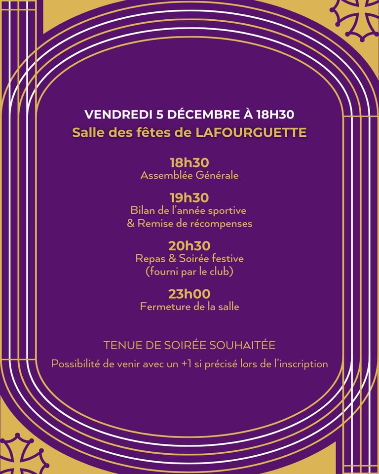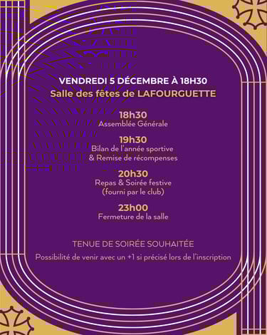 🍴 Inscription au Gala avant le jeudi 27 novembre : lien envoyé par mail aux licenciés