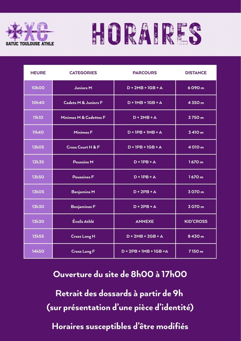 Retrouvez le Cross Départemental du SATUC le dimanche 11 janvier 2026 !