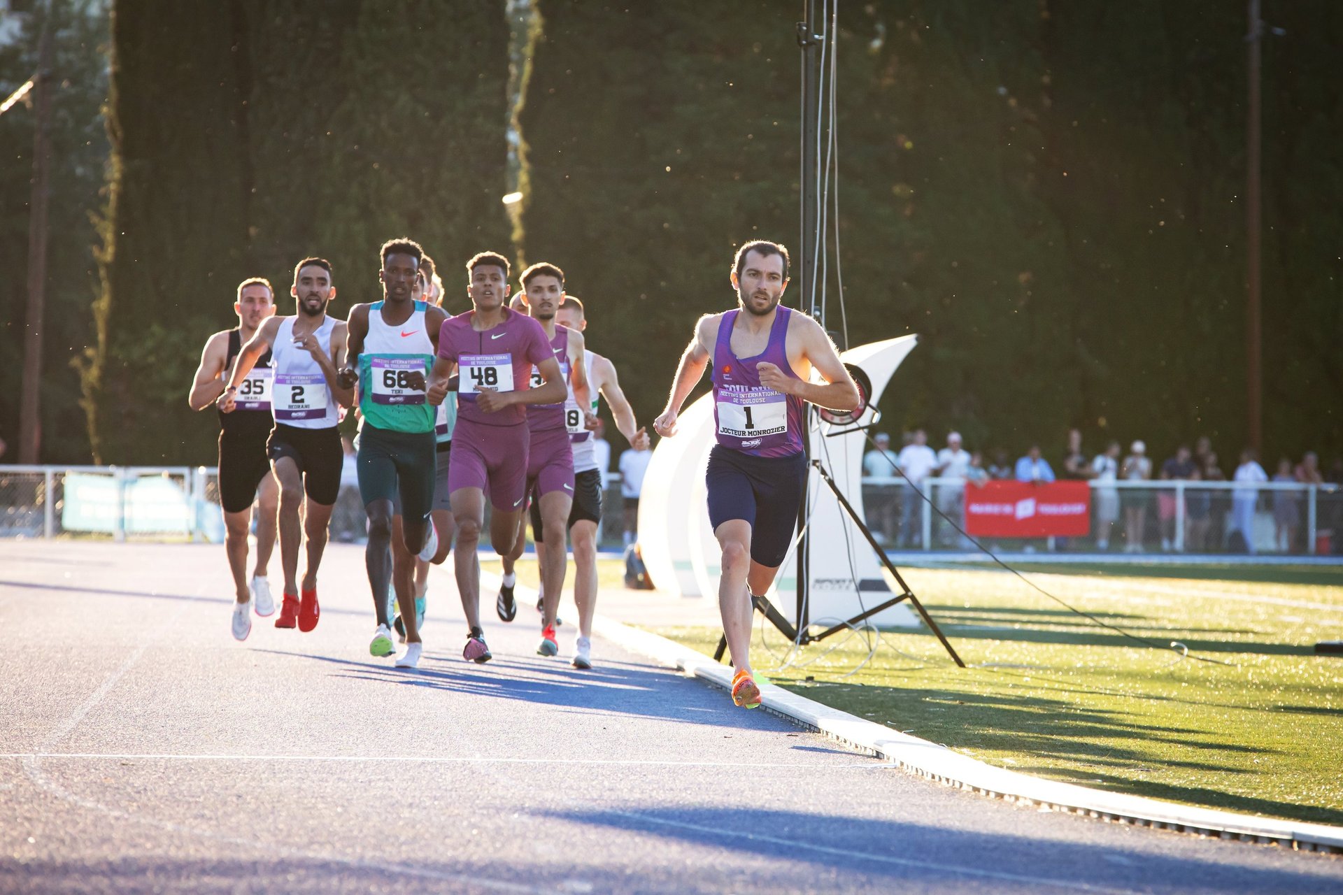 Enfin, le meeting international s’est clôturé en fanfare avec le 1500m hommes, et une victoire mémorable de Pierrik Jocteur Monrozier (SATUC Toulouse Athlé). Sur sa piste d'entraînement, il s’impose en 3'34"30, explosant son RP vieux de cinq ans et battant au passage le record de ligue d’Occitanie. Il devance le Marocain Elhassane Moujahid en 3'35"07 et les espoirs Anis Chott (Algérie) 3ᵉ en 3'35"98 et Abdulkerim Teki (Ethiopie) 4ᵉ en 3'36''07, RP pour tous. La course comptait également Djilali Bedrani, 5ᵉ en 3'36"63 (SB) dans la foulée de sa très bonne rentrée sur steeple (8'11, minima mondiaux), et l'espoir Norvégien Andreas Fjeld Halvorsen, 6ᵉ en 3'37"89, RP synonyme de minima European Athletics espoirs. Au total, 5 performances de niveau IB dans cette course emmenée par l'Algérien Elhocine Zourkane (Athletic Vosges Entente Clubs), et 6 athlètes ayant battu leur RP. Et ce n’était que le début pour Pierrik, qui signera trois jours plus tard un joli 3'33"25 à Dresden, confirmant une saison très bien lancée dans la course aux minima mondiaux !
