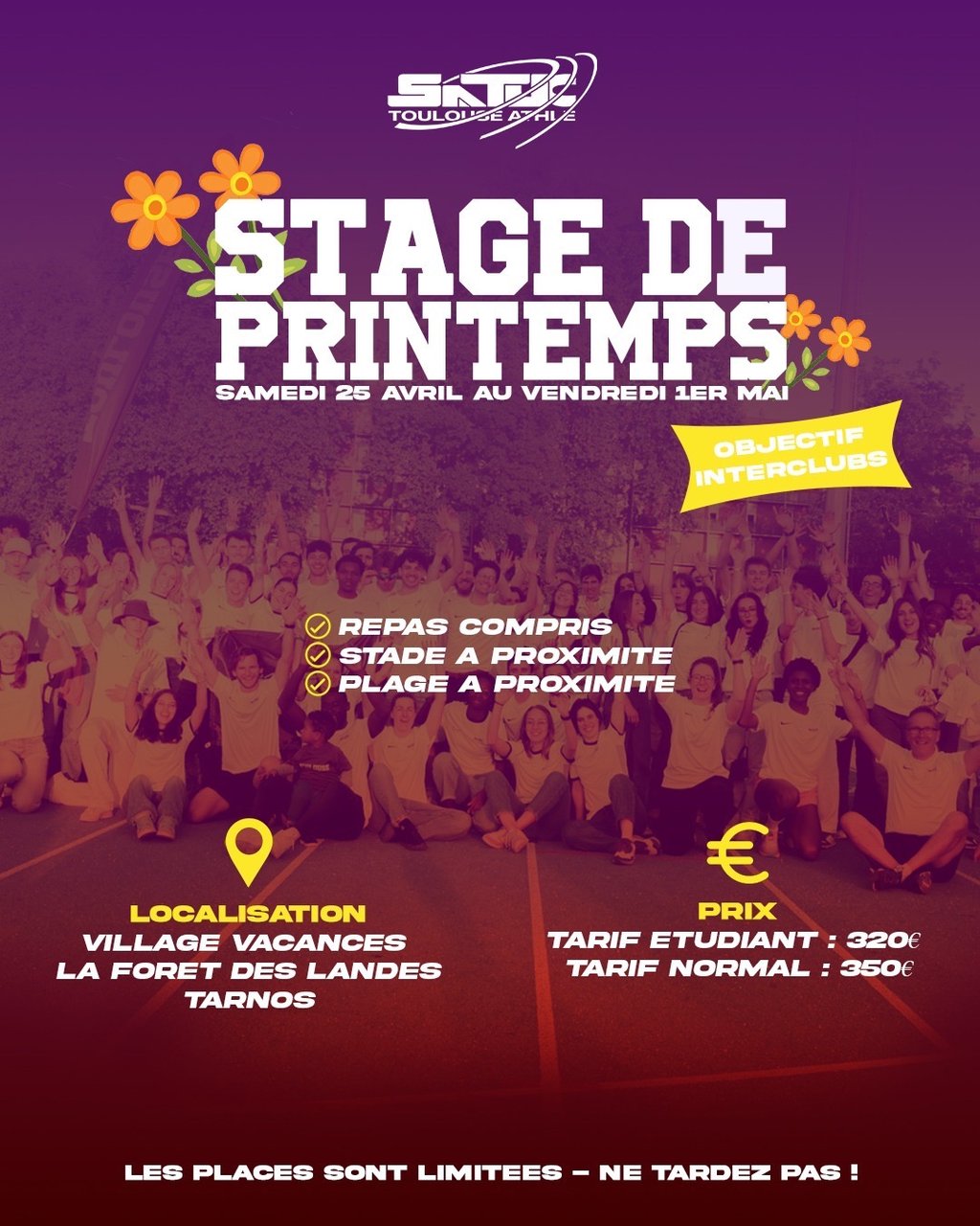 Tarif : 350€ ou 290€ (étudiants et minimes 2)