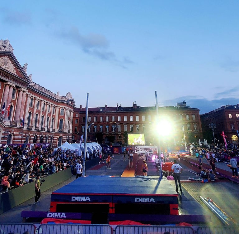 Le Toulouse Capitole Perche a illuminé la place du Capitole vendredi 21 et samedi 22 juin. Organisé par la société Toulouse Perche Événement, avec le soutien de nombreux mécènes, de la Mairie de Toulouse, du Conseil Départemental de la Haute-Garonne et de la Région Occitanie, ce bel événement a rassemblé petits et grands autour du saut à la perche, permettant à tous de découvrir cette discipline olympique en dehors des stades, gratuitement et dans une ambiance conviviale.